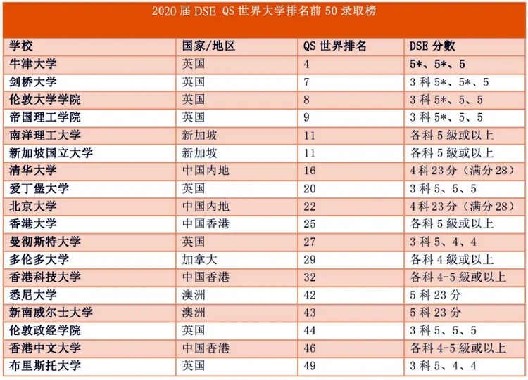 内地學生可通過DSE考試申請香港所有大學,包括港大、港科大、港中大等,或美國、英國、澳洲、加拿大、新加坡等全球300+所知名大學,包括英國劍橋大學、新加坡國立大學、南洋理工大學、澳洲國立大學等著名學府。